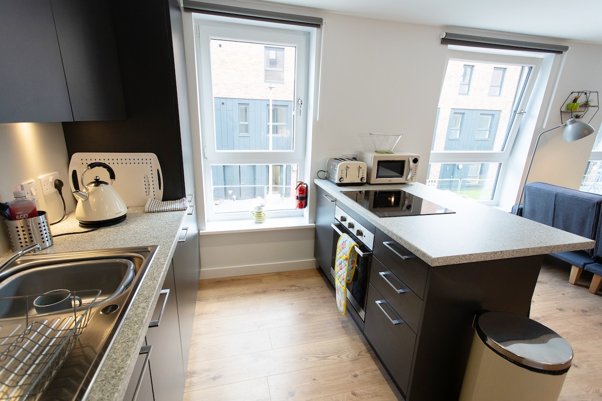 Современная студия в историческом районе Лейт с садом на крыше Светлая студия на первом этаже с лифтом, расположенная в Old Ropeworks. Наслаждайтесь солнечным садом на крыше и близким доступом к 46-акровому парку Лейт-Линкс. Бесплатная парковка на улице, 5 минут до трамвая и частые дневные/ночные автобусы до центра города. Идеальная база для знакомства с оживленными Лейтом и Эдинбургом.