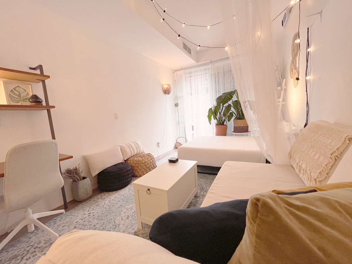 Критики высказались! Этот пятизвездочный, профессионально оформленный номер предлагает свежий, функциональный и красивый дизайн. Каждое произведение искусства и каждый аксессуар были тщательно подобраны для повышения комфорта, стиля и положительной энергии во всем пространстве. В этом просторном люксе с одной спальней и одной ванной комнатой есть полностью оборудованная кухня, открытая гостиная и обеденная зона, а также универсальный кабинет, идеально подходящий для удаленной работы или отдыха после дня в городе.