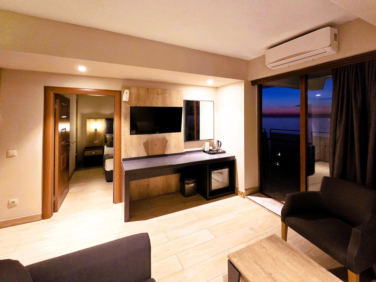 Испытайте роскошь и комфорт в нашем просторном представительском люксе, идеально расположенном всего в 250 метрах от пляжа. Расслабьтесь в роскошной кровати размера King size и насладитесь современными удобствами, такими как Smart TV, высокоскоростной Wi-Fi, отдельная ванная комната и балкон. Сделайте свое пребывание еще более приятным, воспользовавшись доступом к таким удобствам премиум-класса, как сезонный бассейн, спа-салон, тренажерный зал и сауна. Эти услуги доступны в рамках отдельных пакетов или за дополнительную плату. Бесплатный чай/кофе и самое необходимое для комфортного и спокойного отдыха.