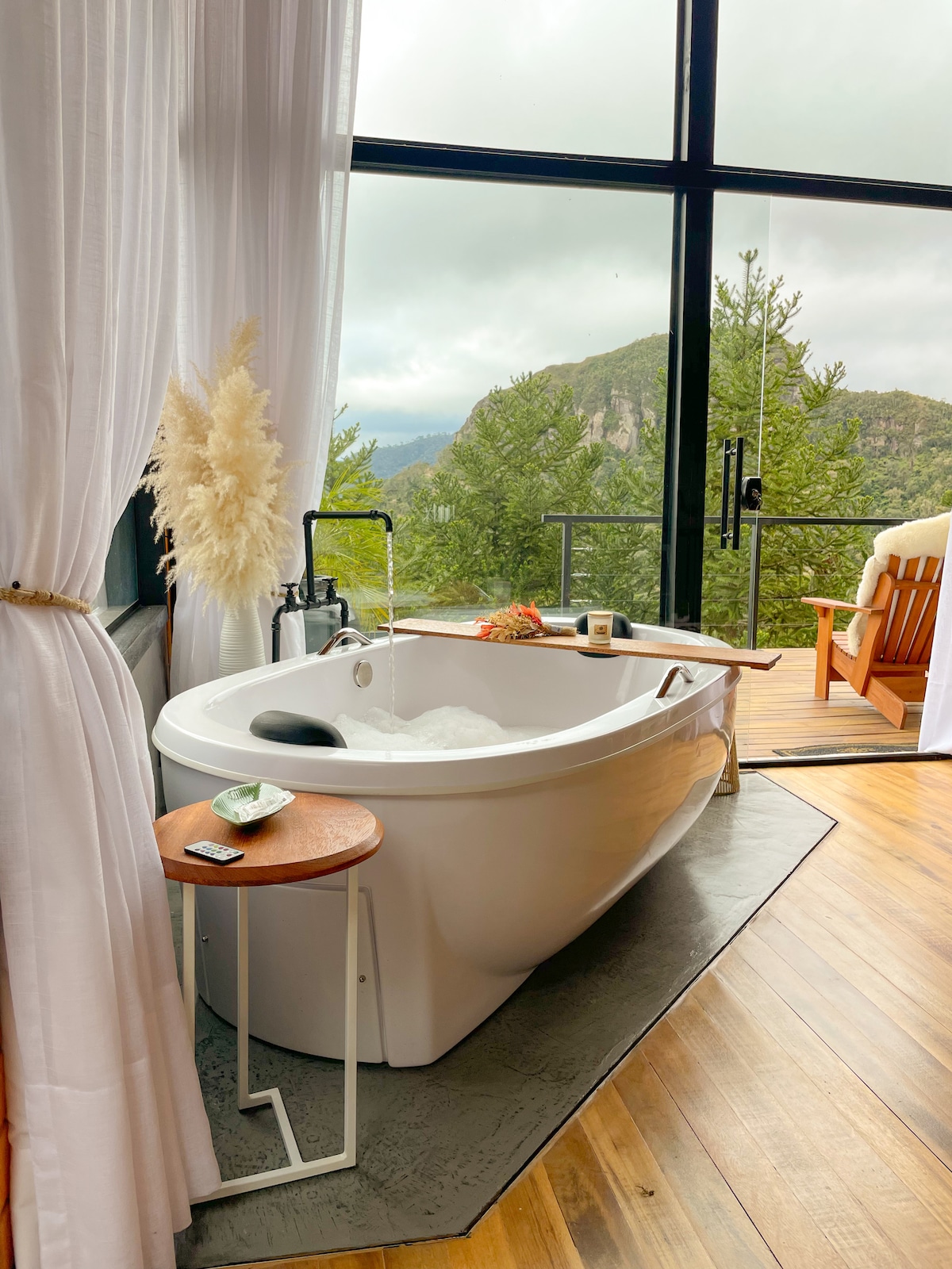 Джакузи в хижине Камелия с видом на горы