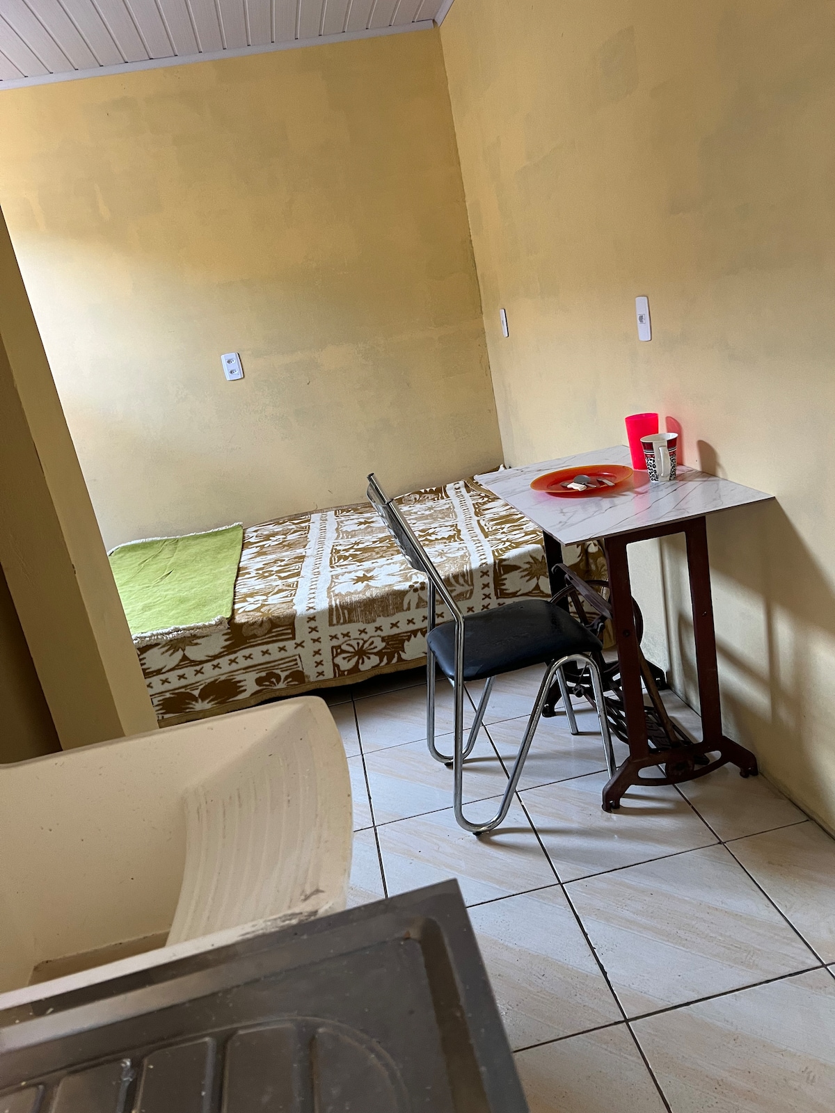 Possui lareira na parte interna, e fogo de chão na área externa.