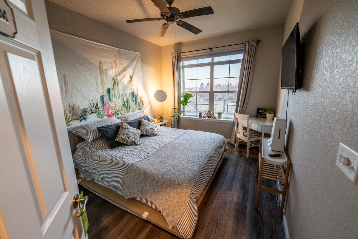 Добро пожаловать в вашу стильную открытую студию! В этом уютном современном жилье есть элегантная гостиная, хорошо оборудованная мини-кухня, а также отдельная спальня и ванная комната. Всего в 10 минутах от центра города, стадиона Coors Field, арены Ball Arena и стадиона Empower Field и примерно в 30 минутах от аэропорта, а неподалеку находятся Скалистые горы. Быстрый доступ к I-70 для лыжных прогулок или 20 минут езды до амфитеатра Ред-Рокс. Наслаждайтесь идеальным сочетанием комфорта, очарования и максимального удобства во время вашего пребывания в Денвере! С нетерпением ждем вас!