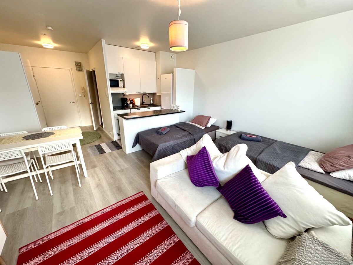 Легкое проживание в центре Ваасы в великолепной высокой квартире для 4 человек. В цену входит отмеченный наградами завтрак Aroma + кофе, чай, ингредиенты для каши. Все услуги центра, рестораны и террасы в нескольких шагах. Квартира размером с большую студию расположена на 2-м этаже. В квартире есть спальня, отделенная раздвижной дверью, с двуспальной кроватью, а также еще одна двуспальная кровать на большом балконе. Кухня великолепно приподнята и отделена от гостиной.