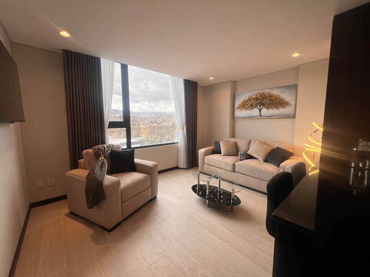 Откройте для себя Ла-Пас в этой эксклюзивной квартире в лучшем районе. Современное, минималистичное и уютное жилье для тех, кто ищет комфорт и стиль. Проснитесь с впечатляющим видом и погрузитесь в яркую энергию этого мегаполиса. Полностью оборудована для идеального проживания, сочетает в себе роскошь и тепло. Спросите о нашей услуге трансфера из аэропорта премиум-класса и насладитесь Ла-Пасом с комфортом и изысканностью.
