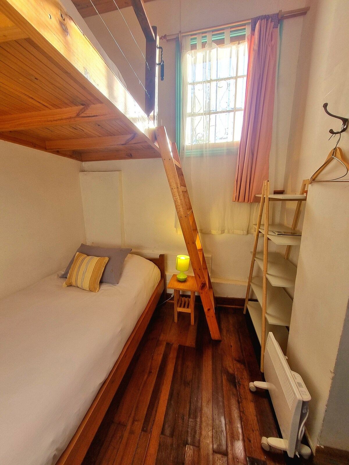 Номер находится в красивом хостеле с идеальным расположением в Серро-Алегри: в 100 метрах от 4 смотровых площадок, в 200 метрах от ресторанов и баров, ресторанов и баров, супермаркета, банков, обменных домов и банкоматов. У нас есть крафтовая пивоварня и кофейня, круглосуточная двуязычная стойка регистрации, 10 общих ванных комнат, завтрак «шведский стол» с домашними вафлями (за дополнительную плату), кухня, прачечная и место для хранения багажа. К услугам гостей 1 двуспальная кровать или 1 двуспальная кровать и 1 двухъярусная кровать, отопление, шкаф, рабочий стол, кабельное телевидение и полотенца для каждой кровати.