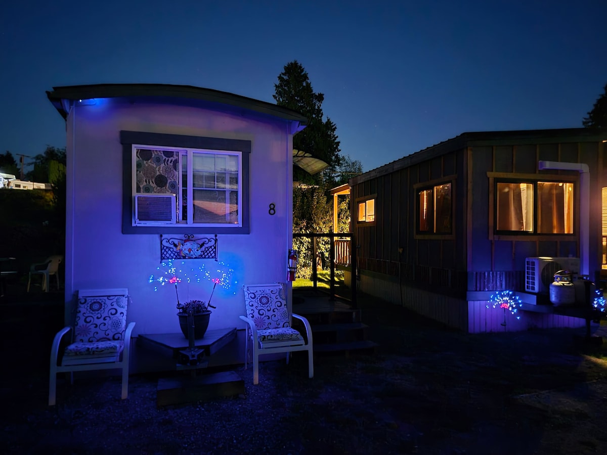 Sojourn, a mystical forest rustic retreat. Rejuvenate with therapeutic hot tub, sauna, and cold plunge. Close to the ocean, this serene escape offers relaxation and tranquility for couples and solo travelers, minutes from Vancouver. Nestled in a serene orchard, the charming cottage features paths and cozy seating areas. Point Roberts is a safe coastal community with minimal noise and light pollution, perfect for private seaside getaway. Please message if you have any questions on Sojourn or area
