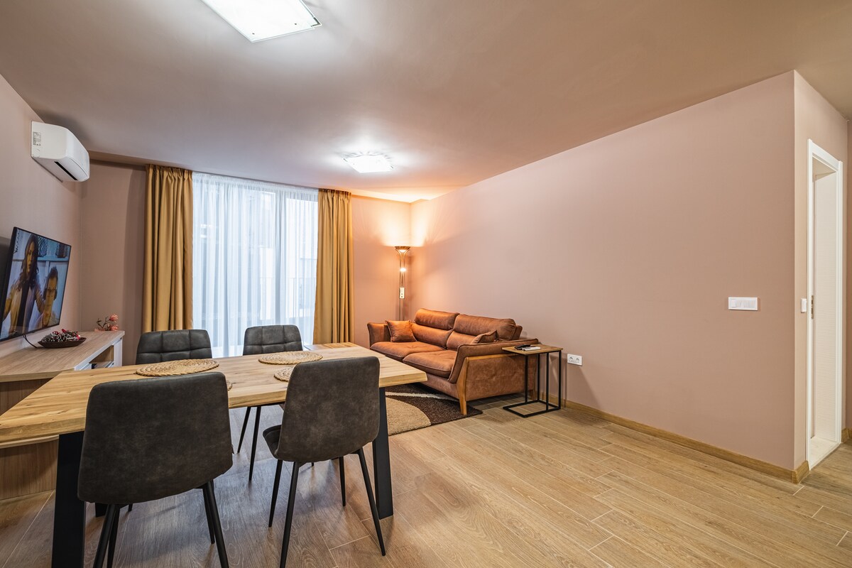 Современная и стильная квартира DOLCE CASA с одной спальней, просторной гостиной, удобной спальней, полностью оборудованной кухней и солнечной террасой. Жилье DOLCE CASA расположено в центре Варны (рядом с отелем Graffit), на центральной, но тихой улице, всего в нескольких метрах от главной пешеходной зоны, Морского сада и песчаного пляжа. Отель DOLCE CASA, окруженный самыми эксклюзивными ресторанами, барами, спортивными и торговыми объектами, станет вашим лучшим выбором для отдыха или деловой поездки.