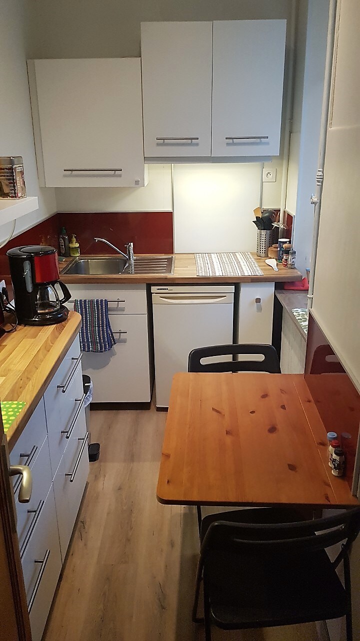 В 800 м от бань Uriage-Les-Bains, большой T1 32m2 уютный и комфортный с приятным ретро-стилем Тихий, с двойным остеклением, ориентирован на небольшой частный парк Расположена на 2-м этаже резиденции с лифтом Отдельная кухня, отдельный туалет, приятно для 1 человека Прямо перед домом: _Uriage Park _Автобусная остановка "Тюильри" (линия 23) _Голодная пекарня _ Дружелюбное кафе-ресторан_ Большая парковка перед зданием для вашего автомобиля