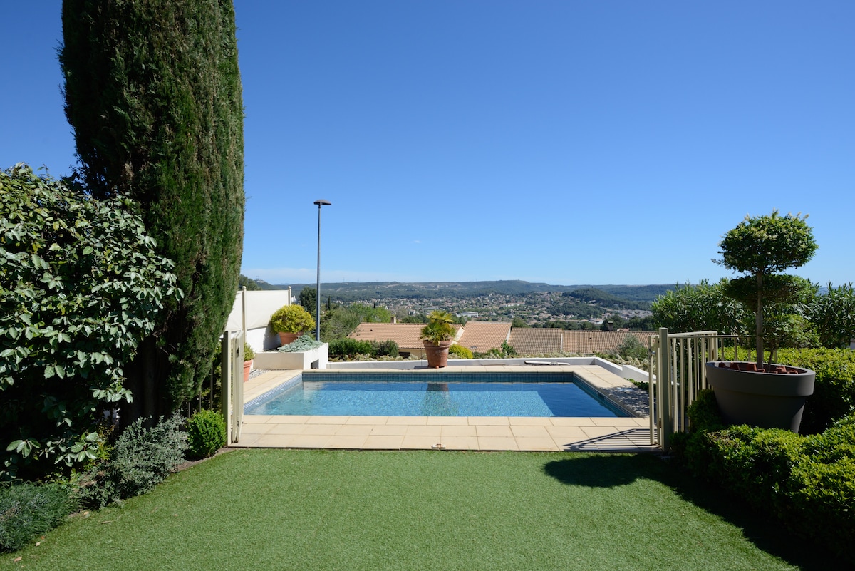 В центре Люберона, этот уникальный и отремонтированный дом с 4 спальнями выходит на гектар земли с видом на Сент-Виктуар, что позволяет вам отключиться и насладиться природой и играми ... Вы найдете в парке безопасный бассейн, открытый с мая по сентябрь и качели. Мы предоставляем вам кофе, джемы, мыло, гели для душа, шампунь и бытовое постельное белье. Домашние блюда предоставляются по запросу.