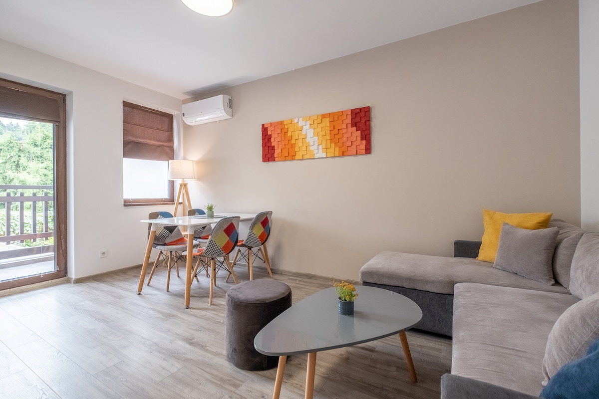 Newly refurbished spacious 2-bedroom apartment situated in a quiet neighbourhood in the centre of Veliko Tarnovo. It is located very close to the City Market, 5 min walking distance from the main shopping street and only 15 min walk from the Old Town. The private garage offers our guests the convenience of trouble-free parking, and the outdoors garden area next to the apartment makes our guests stay even more pleasantand relaxing.