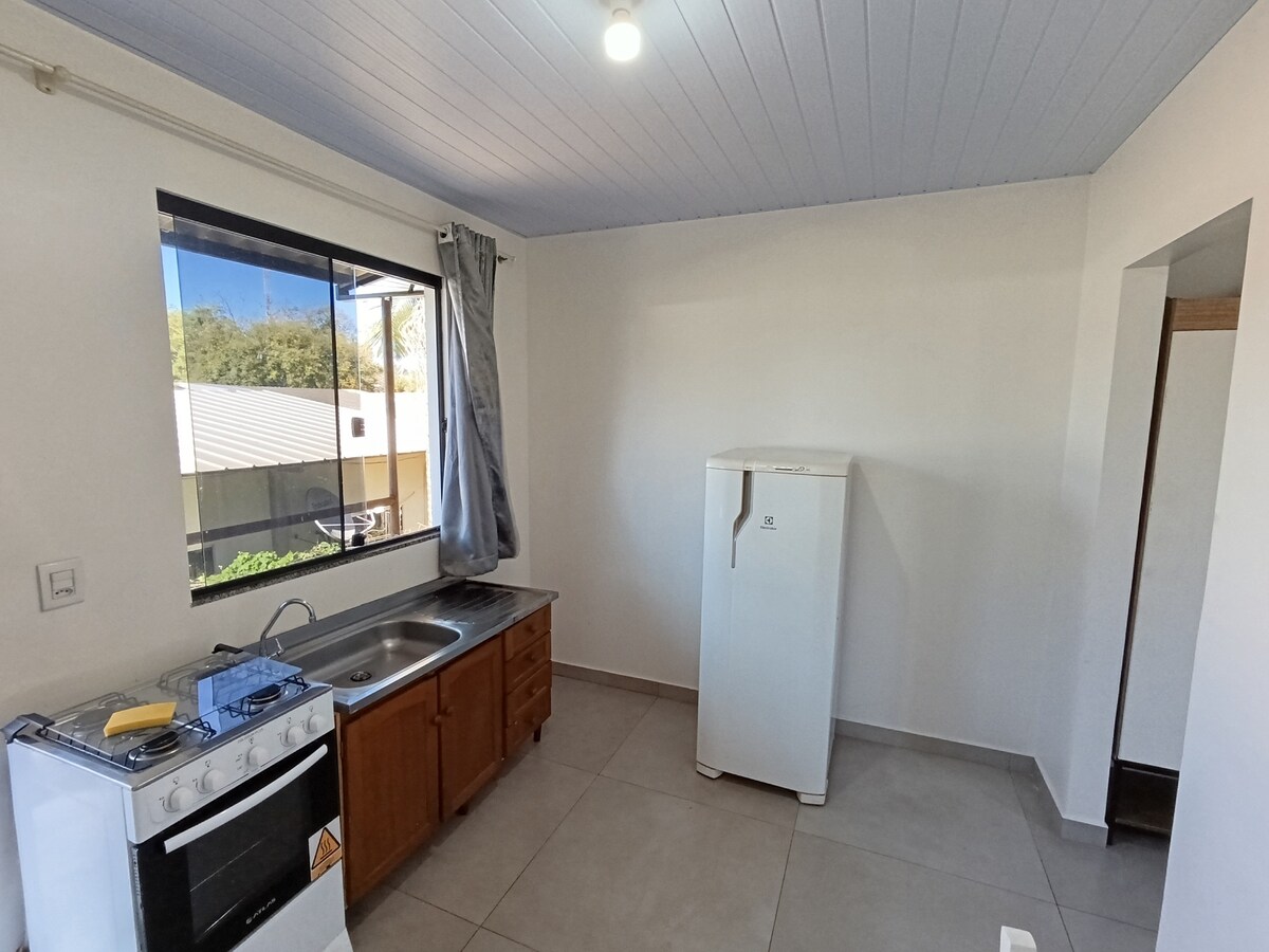 Уютная квартира, идеально подходящая для комфортного и безопасного проживания.В номере есть 1 отдельный люкс, гостиная, совмещенная с кухней, а также современный и функциональный дизайн.На кухне есть плита и необходимая посуда для удобного приготовления пищи.Организованное, чистое пространство, созданное для обеспечения комфорта.Идеально подходит для пар, деловых путешественников или тех, кто приезжает на короткий срок и ищет спокойствия и удобства. Рядом с BRF, автозаправкой, круглосуточным магазином, UNISEP, трудовым судом, школой.