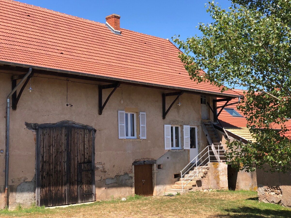Notre gîte a été rénové en partie par nous même afin d'en faire un lieu accueillant et reposant. Cette ancienne grange où mon grand-père puis mon papa y ont pressé la vendange, de cette époque il reste la vis du pressoir qui trône fièrement au centre de la pièce de vie. Le charme de l'ancien côtoie le confort des matériaux modernes, nous espérons que vous trouverez en ce lieu un havre de paix pour vous ressourcer. Notre petit hameau se situe en pleine campagne bourguignonne. Parking