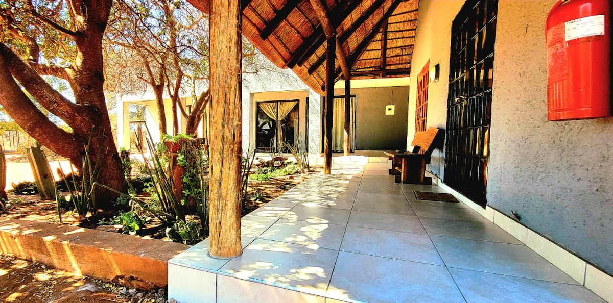 Lodge sleeps 13 people in 4 rooms ( 2 en-suite and 2 share an open view bathroom) Lodge booked to 1 group at a time. Situated 30km from Musina on the Limpopo river Lodge is accessible with a non 4x4 vehicle, but to experience the farm /camp in full a 4x4 is required. Create memories while enjoying the Limpopo river, hiking, biking or quad-biking, (bring your own), fishing or just relaxing. Gamedrive & sightseeing optional extra. Serviced daily - fully equipped.