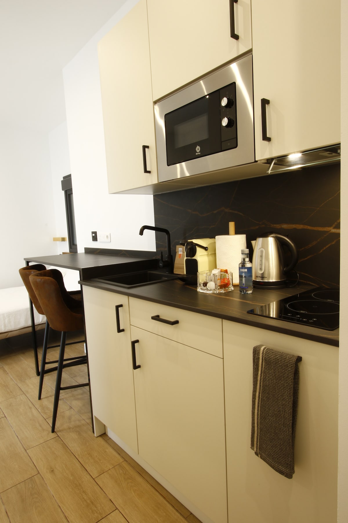 “Vine” apartment is located in Madrid center, off Gran Via, on a quiet street in a new building with elevator. It is nature-inspired, bright & modern, has WiFi, is fully equipped and is very close to restaurants, tapas, the Metro, shops & galleries. Best for a single, couples or couples with a kid! Pets are invited happily!!! The apartment is located in a new buliding, with an elevator! It is modern designed, with lots of greenery, themed to its name, Vine. A huge window along the length of the whole apartment overlooks a beautiful private garden. The apartment consists of a bedroom with a double bed, a living area with a single pull-out sofa, kitchen and bathroom. It has WiFi and is fully equipped, including a washing machine, TV, air conditioning, and Nespresso coffee maker - all just ready for your comfort and enjoyment! The apartment is a studio open space apartment - and it's all yours to enjoy! There are no areas in the apartment that you cannot use or access! We love hosting, but also respect our guests' privacy! We are here for you as much as you would like! Located just off Gran Via in lively buzzing Malasana neighborhood with its great range of authentic cafes, tapas & bars. Huge Zara Primark & Mango are minutes away. Best Madrid sites like Royal Palace, Puerta del Sol & Museums are in walking distance The Central Metro Station Gran Via is a 2 minute walk from the apartment. From there you can take the metro to anywhere you want in Madrid and also to all the train stations that will take you out of Madrid to the rest of Spain. If you come by car, a big parking lot is located at Barco 1, Madrid, just a minute from the apartment. There is also a bicycle-rental station close by. A hosting kit of water, soda, milk, coffee, tea and sweetners will be waiting to welcome you :-)