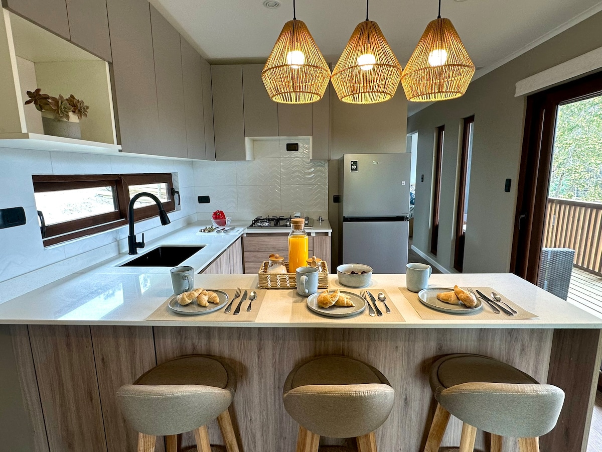 Relájate en este espacio tranquilo y elegante, Bush Lodge se encuentra en Cahuil-Pichilemu, a solo 5 min de la laguna de Cahuil y 10 min de Punta de Lobos. Cabaña inmersa en un bosque de eucaliptus, ideal para desconectar de la rutina y el estrés. Cuenta con: - Tinaja y terraza privada - Desayuno con costo adicional - Parrilla - 2 dormitorios - Cocina equipada - Calefacción - Internet Starlink - Sabanas y Toallas - Baño privado - Estacionamiento privado