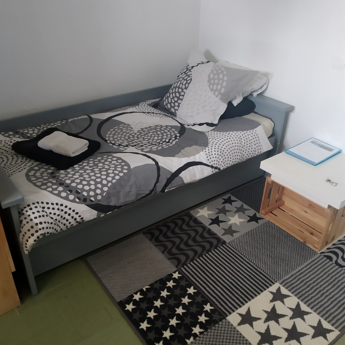 Situé dans un jardin clos le logement est indépendant du domicile des propriétaires. Il est petit : 14 m2 . Malgré la proximité du centre ville le lieu est calme. Pour des courts séjours la maisonnette est idéale. L'aménagement est simple, fonctionnel et chaleureux. Une seule personne est acceptée dans ce logement. Notre hôte doit porter des chaussons. Suite à des expériences désagréables des frais de ménage (25€) seront demandés si le logement n'est pas rendu propre.