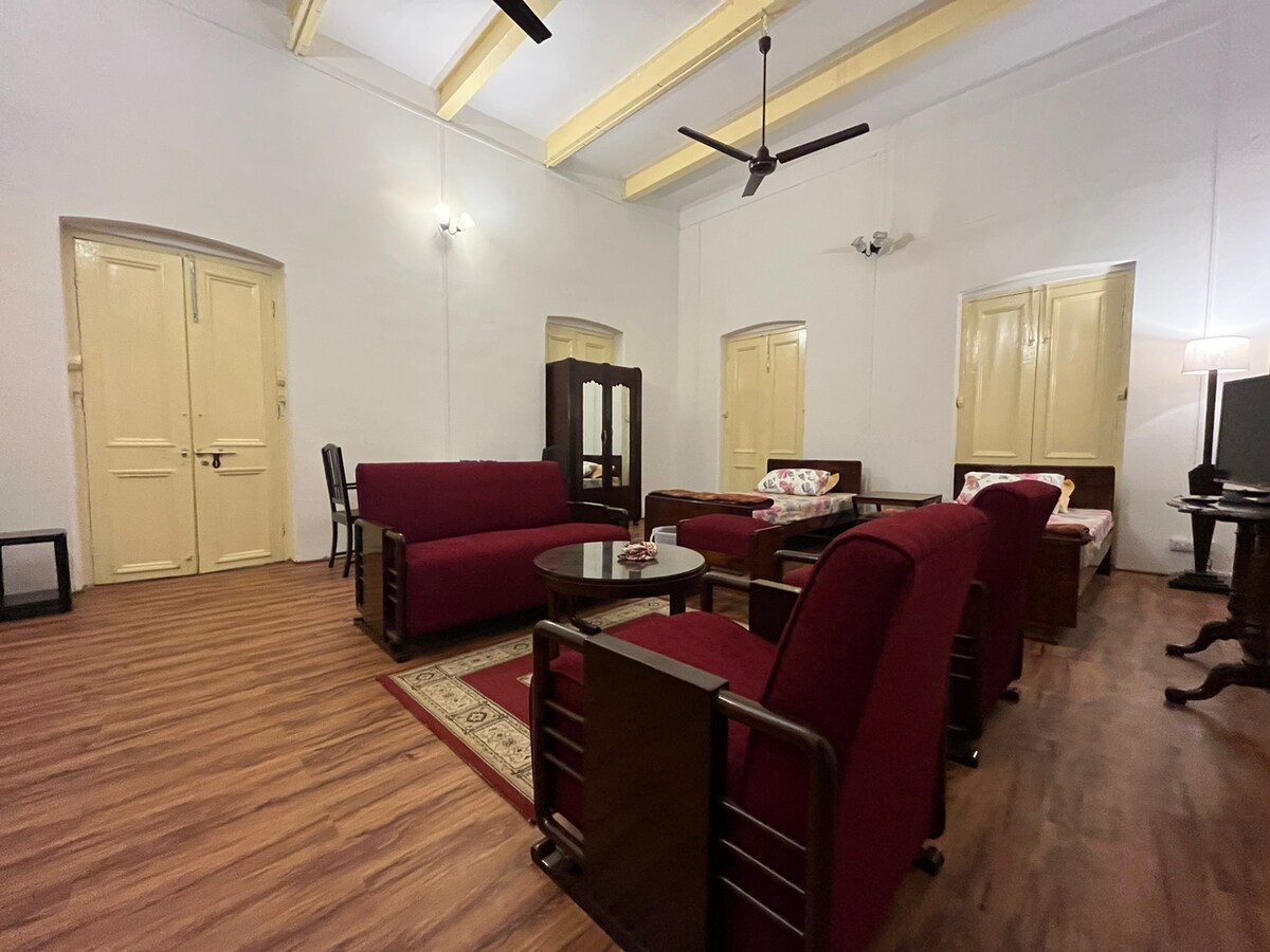 Откройте для себя уникальное пребывание в очаровательной квартире на верхнем (4-м) этаже коворки The Red Bari и кофейни. Живите в отреставрированном и переоборудованном историческом здании с аутентичной атмосферой Калькутты и всеми удобствами. Просторный, с большим количеством естественного света из окон и выходом на террасу. 2 минуты ходьбы от метро, очень центральное расположение в центре города. Доступ к лифту до 3-го этажа. Доступ к специальному рабочему месту и другим зонам общего пользования.