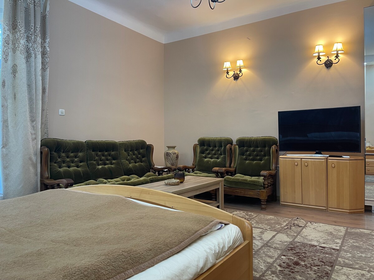 Stay in a piece of history! This spacious, fully renovated apartment is located in Timisoara's oldest hotel, built in 1752. Emperors Joseph II and Francis I of Austria, as well as Alexandru Ioan Cuza, the first ruler of the Romanian Kingdoms, once stayed in this very building. Now a modern, fully equipped space for 2 to 4 guests, it combines historic charm with contemporary comfort. Located in the heart of the Old Town, you'll be surrounded by cafes, restaurants, and iconic landmarks.