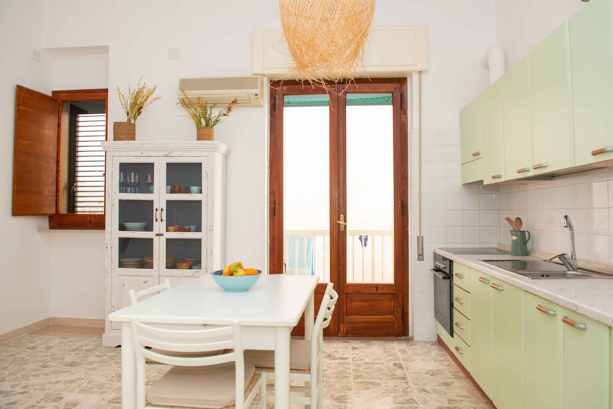 Vieste, in the heart of the historic center, nestled among the narrow streets of the village, Casa Tua - Sea View is a tastefully renovated apartment with a sea view and a view of the famous Pizzomunno beach. Immersed in artisanal shops, restaurants, ice cream parlors, and nightlife spots, the house is centrally located between the two most popular coastlines, Pizzomunno and the port. From the balcony, you can see the rocky beach of "La Ripa," just a 2-minute walk away.