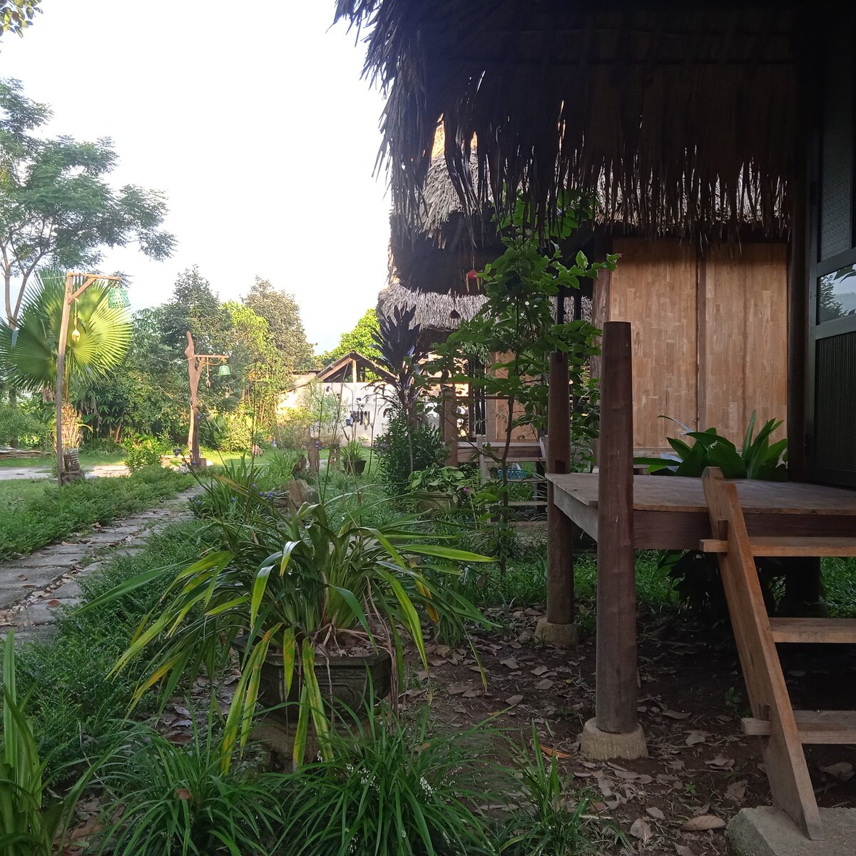 Дом называется Thu House, расположенный прямо рядом с ручьем, посреди огорода и цветочного сада семьи. С балкона можно услышать, как ручей спешит, наблюдающий закат и горы. В доме 2 этажа: - 1 этаж со столами и стульями, качелями, гамаком расслабляет. - 2-й этаж - спальня, обычно с 1 матрасом + дополнительной кроватью, если гостей больше, может разместиться от 2 до 4-х человек. - Отдельная ванная с горячей водой и душем. - Есть балкон, где можно выпить чай и насладиться видом вместе.