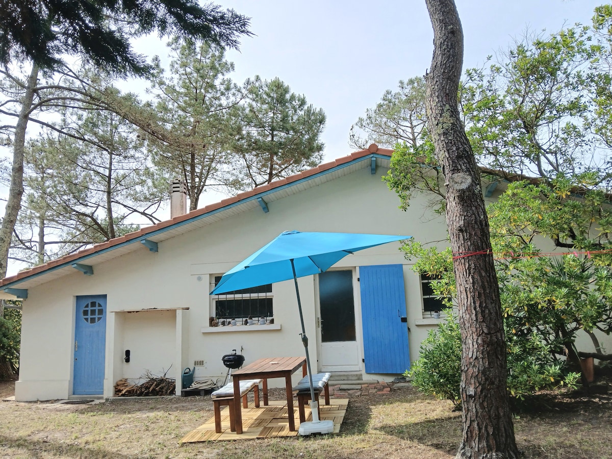 Idéalement placé à 700m du lac et de sa plage et à 200m du centre à pieds. Au calme, dans une petite résidence. Océan à 20 minutes à pieds. Place de parking attitrée. De plain pied : Séjour avec canapé clic clac, cuisine équipée (plaque électrique, frigo, cafetière, grille-pains, micro onde grill) avec une petite terrasse. - chambre 1 avec lit double et bureau - chambre 2 avec lit superposé et lit simple. Salle d'eau avec machine à laver. Les draps et serviettes ne sont pas fournis.