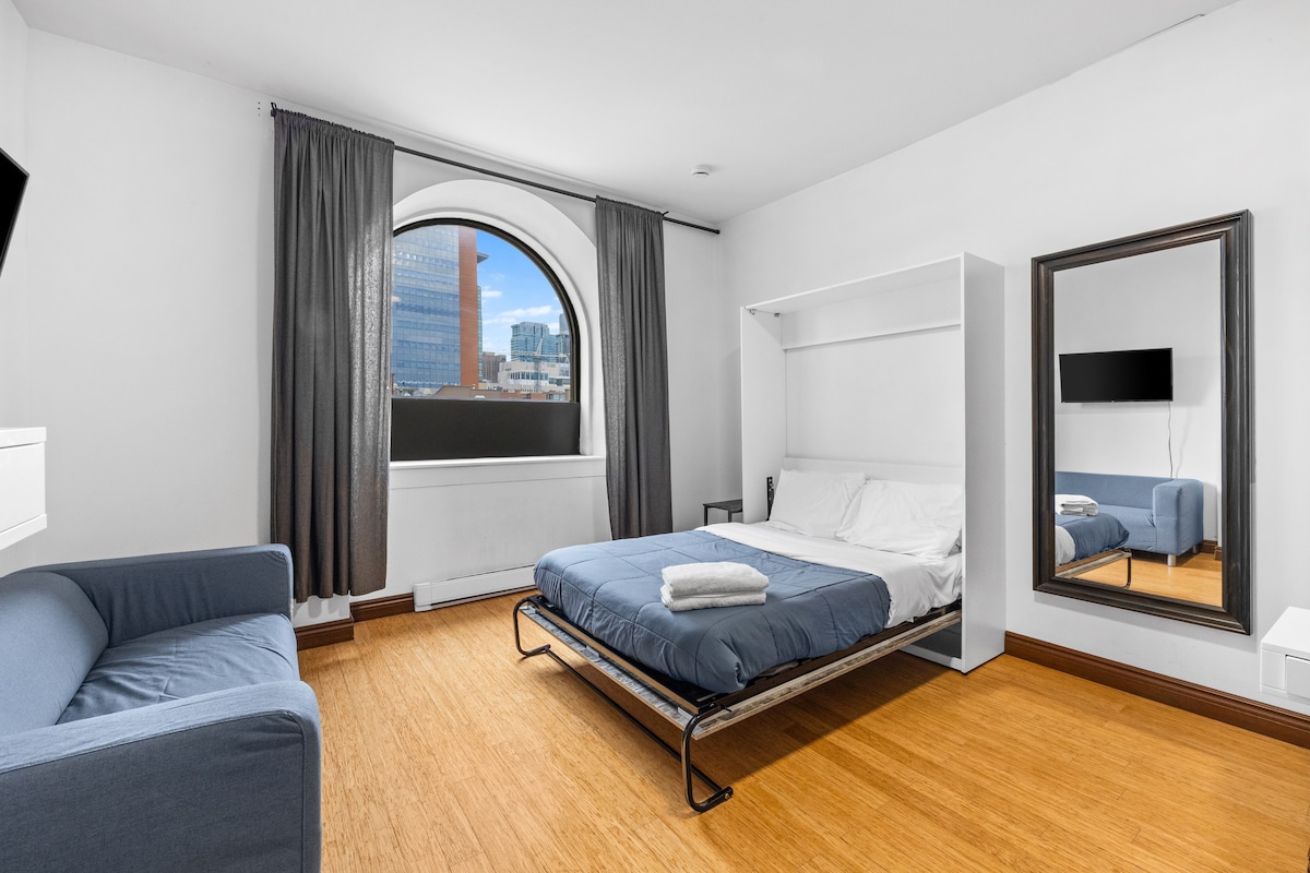 Stay in the heart of Montréal — a boutique 8-suite apart-hotel in vibrant Shaughnessy Village. Each studio offers a private kitchen, full bathroom, and stylish furnishings. Steps from Concordia University, Sainte-Catherine Street, metro Guy-Concordia, and the city’s top cafés and restaurants. Ideal for extended stays, business travellers, students and visitors seeking comfort and convenience downtown.