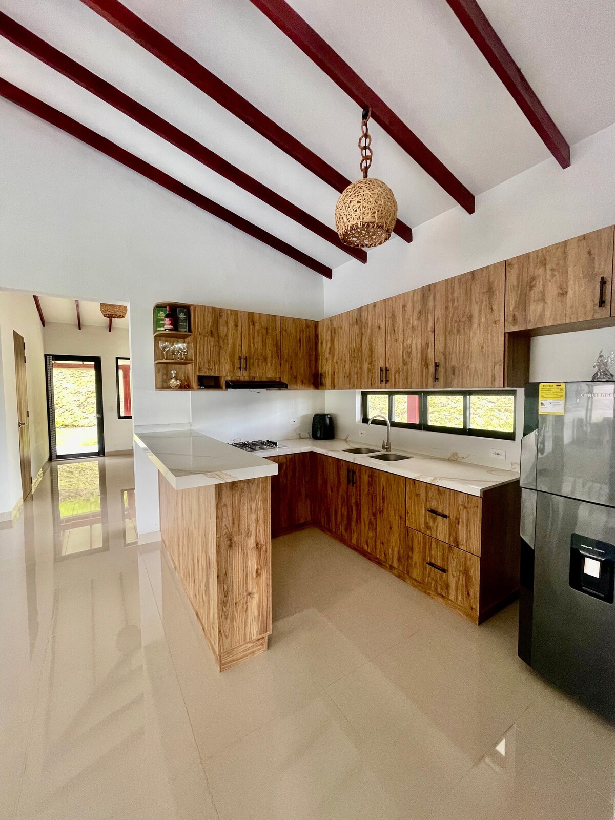 Откройте для себя рай в окружении природы, где пение птиц, фруктовые деревья и зеленые пейзажи приглашают вас отключиться и глубоко вздохнуть. Это жилье предлагает идеальный баланс между сельским спокойствием и современным комфортом. Дом полностью оборудован и предназначен для отдыха и наслаждения. К услугам гостей просторные комнаты, современная кухня, удобные спальни, зона барбекю, бассейн с видом на природу и зоны отдыха, идеально подходящие для отдыха с семьей или друзьями.