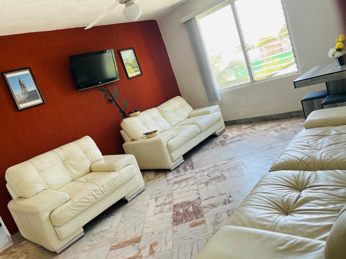 Красивая квартира в центре города Колима. Всего в 4 кварталах от собора. Очень уютное место, чтобы наслаждаться с семьей или с вашим партнером. Все удобства, как если бы вы были дома. У нас нет частной парковки, но вы можете припарковаться прямо за пределами собственности на улице или, если вы предпочитаете из-за своей близости к центру, рядом с районом есть парковка и пансионы по хорошим ценам.