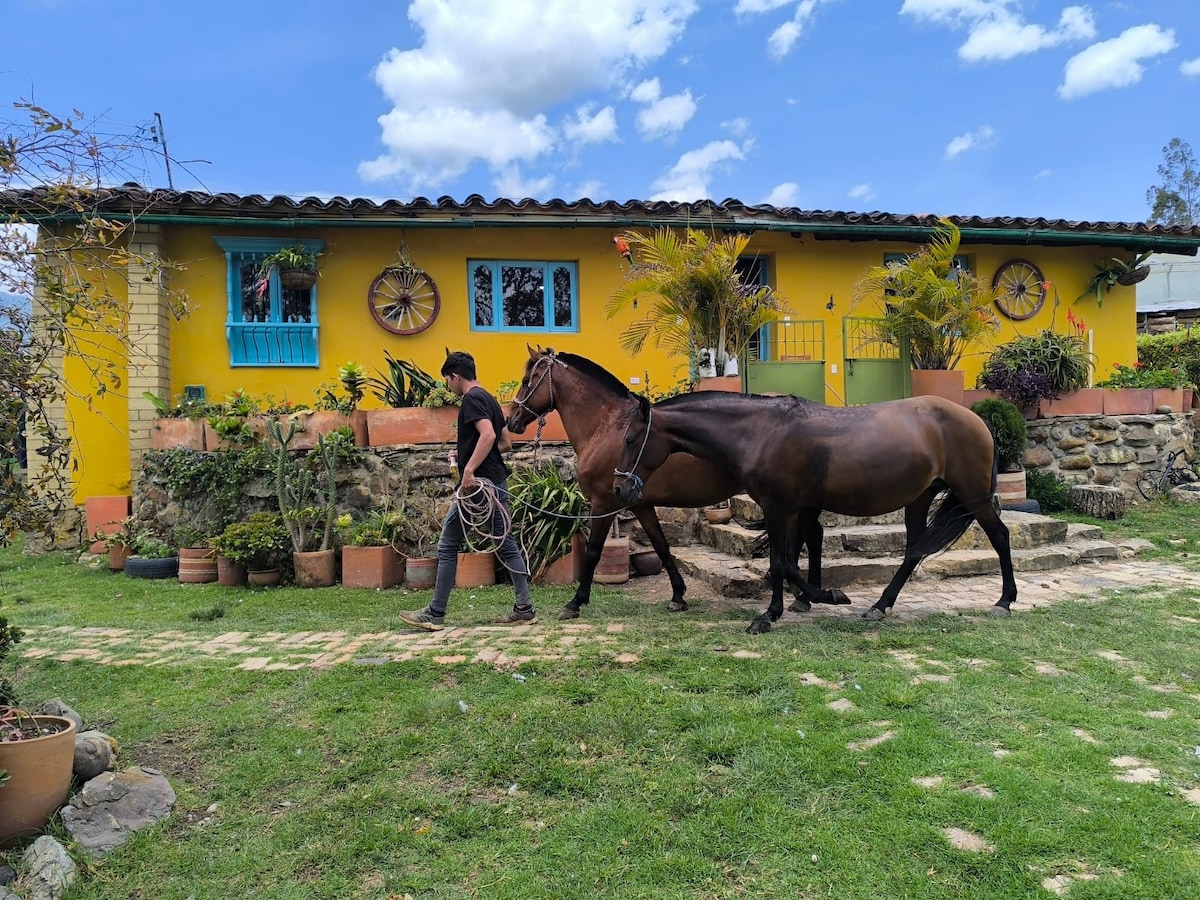 ! Домик расположен в горах долины Ричурте, на окраине Вилья-де-Лейвы (в 4,5 км по дороге в Аркабуко). Это идеальное место, чтобы отдохнуть от города и провести выходные вдвоем в уникальной обстановке среди андской природы. У нас есть озеро с рыбой, которую вы можете покормить, и вы можете прогуляться по окрестностям, познакомиться с другими фермами, а также отправиться на реку Кане и дойти до границ природного парка IGUAQUE. ПОЗДНИЙ ВЫЕЗД в 17:00.