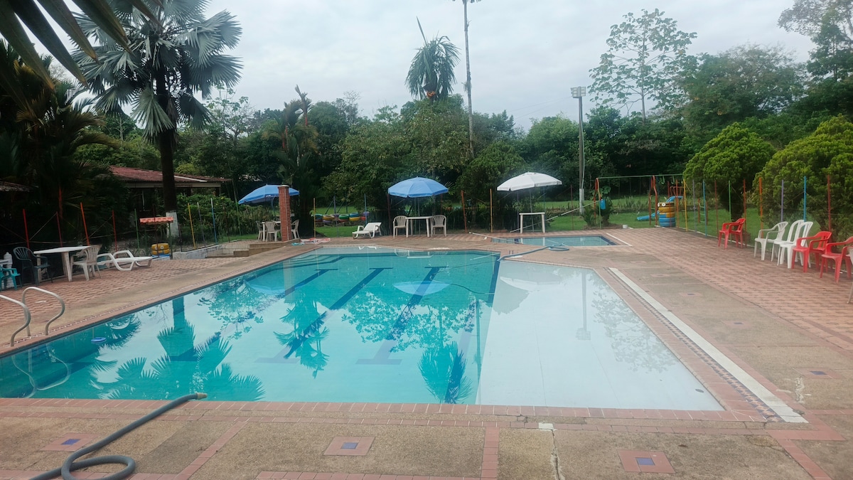 Загородный дом в сельской местности Вильявисенсио, просторный и прохладный, 4 алькова, бассейн и барбекю. Наблюдение за птицами. У нас есть велосипеды для езды по реке, болиран, волейбол, настольные игры. Жилье расположено в деревне Арагуаней, в 8 км от университета Unillanos (Vda Barcelona), 4 км из которых асфальтированы, а 4 км — грунтовые, но проехать можно на небольших автомобилях.