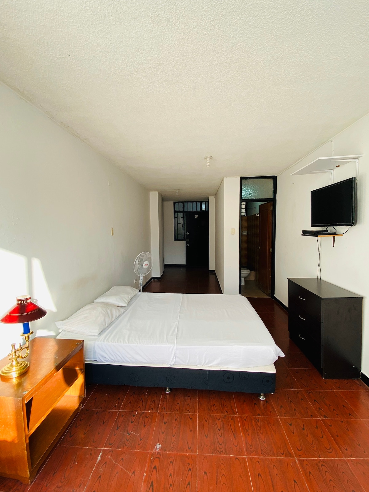Насладитесь частной, комфортабельной и полностью оборудованной квартирой-студией в районе Донья-Лус, тихом районе с отличным доступом к транспорту, магазинам и ресторанам. Идеально подходит для путешественников, пар, студентов, рабочих и тех, кто ищет безопасное и практичное место для отдыха в Вильявисенсио. ⭐ Особенности квартиры-студии • Удобная двуспальная кровать • отдельная ванная комната; • телевизор Smart TV; • Высокоскоростной Wi-Fi • Кондиционер • мини-холодильник;