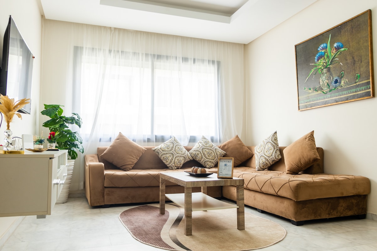 Добро пожаловать в спокойное и безопасное жилье всего в 5 минутах от аэропорта имени Мухаммеда V. Эти современные апартаменты с одной спальней идеально подходят для деловых путешественников, семей, транзитных поездок и специалистов промышленной зоны. К услугам гостей оптоволоконный Wi-Fi 100 Мбит/с, центральный кондиционер, лифт и просторный балкон в закрытой резиденции с бассейном. В шаговой доступности находятся супермаркеты, кафе, рестораны и магазины.