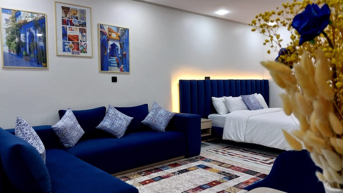 Добро пожаловать в нашу студию, вдохновленную Шефшауэном 💙 Всего в 5 минутах от аэропорта имени Мухаммеда V, наслаждайтесь тихим, светлым и тщательно оформленным пространством. Отлично подходит для гостей, семей или деловых поездок. 📶 Быстрый Wi-Fi. удобные двуспальные 🛏️ кровати размера King size Офисная 💻 зона для работы 🍽️ Мини-кухня + обеденная зона 🛋️ Гостиная с 2 диванами 🚿 Ванная с душем. 🌿 Небольшой собственный балкон Легкое 🎁 прибытие – Гибкость – Теплый прием