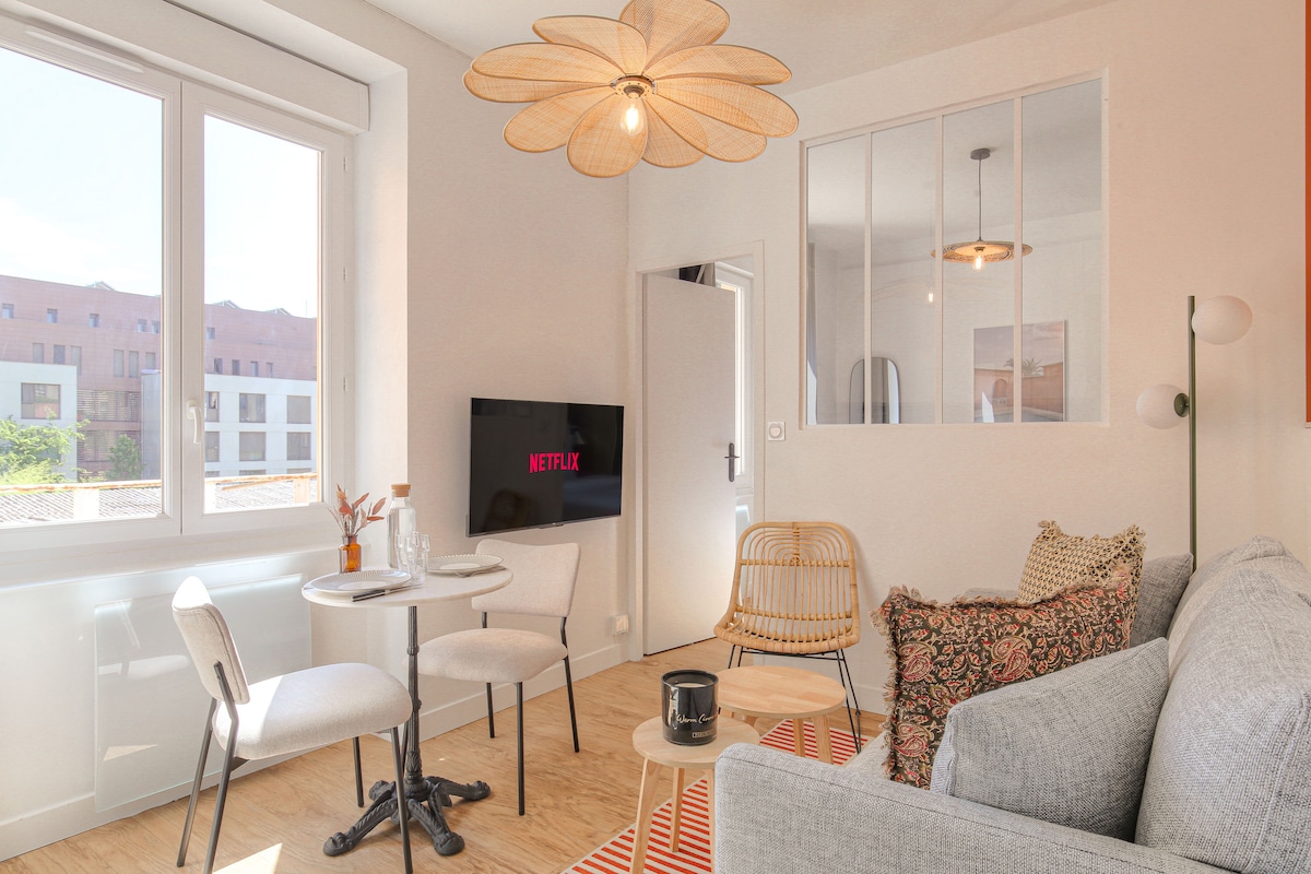 ✨Приезжайте и насладитесь стильным и центральным жильем площадью 45 кв. м, идеально расположенном в 1 минуте ходьбы от станции метро «Небоскреб». ✨ Эта полностью оборудованная квартира соблазнит вас. Рядом с станцией метро La Part Dieu в 20 милях, Bellecour в 15 минутах, стадионом Groupama в 20 минутах и менее чем в 30 минутах от аэропорта с прямыми шаттлами! Расслабляющая атмосфера с Netflix для комфортного проживания, это обещание, которое мы даем вам!