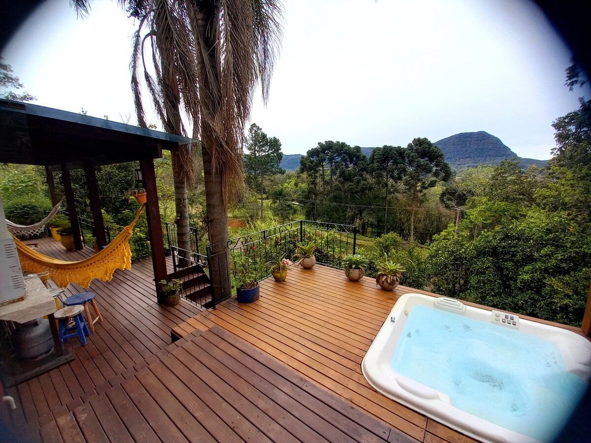 УНИКАЛЬНО! ДЖАКУЗИ и вид на ОЗЕРО. Мини-дом внутри кондоминиума. Laje de Pedra, УНИКАЛЬНЫЙ ВИД НА ОЗЕРО, утки и другие бесплатные животные. Джакузи Mini Spa для 3 человек, температура до 40C на открытом воздухе и частные! велосипеды. Очень спокойное место, со множеством природы, отлично подходит для прогулок и отдыха. Лучший ресторан в Серра-Гауча находится в кондоминиуме. ПРОСТАЯ И БЫСТРАЯ СВЯЗЬ, ЭТО ГАРАНТИРОВАННО УСПЕШНО. Это не отель, общение ВСЕГДА!!!