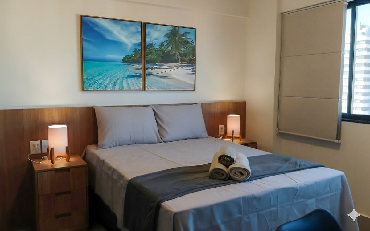 Стильное жилье в квартире, расположенной на самом очаровательном проспекте города — Olívia Flores. Предназначен для гостей, которые ценят комфорт, оснащен телевизором Smart TV 43", кондиционером, постельным бельем 300 нитей, просторной ванной комнатой, кухней с посудой, холодильником и микроволновой печью. Он находится в 7 минутах от торгового бульвара, в 9 минутах от центра города и в 10 минутах от торгового центра Conquista Sul.