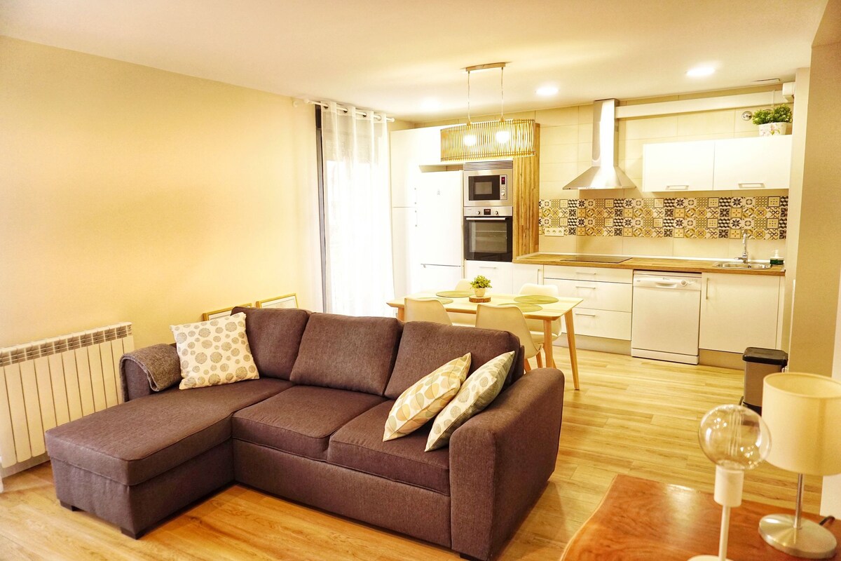Идеально подходит для винного туризма, еды и культуры региона. Красивая квартира площадью 55 кв. м, просторная гостиная, спальня со встроенным шкафом, хорошо оборудованная кухня, просторная ванная комната, частная парковка, Wi-Fi, летний бассейн, зеленая зона и терраса. Потолочные вентиляторы. Кондиционер отсутствует. Расположена в тихом жилом районе, всего в 5 минутах от центра Логроньо. Это место спокойное!