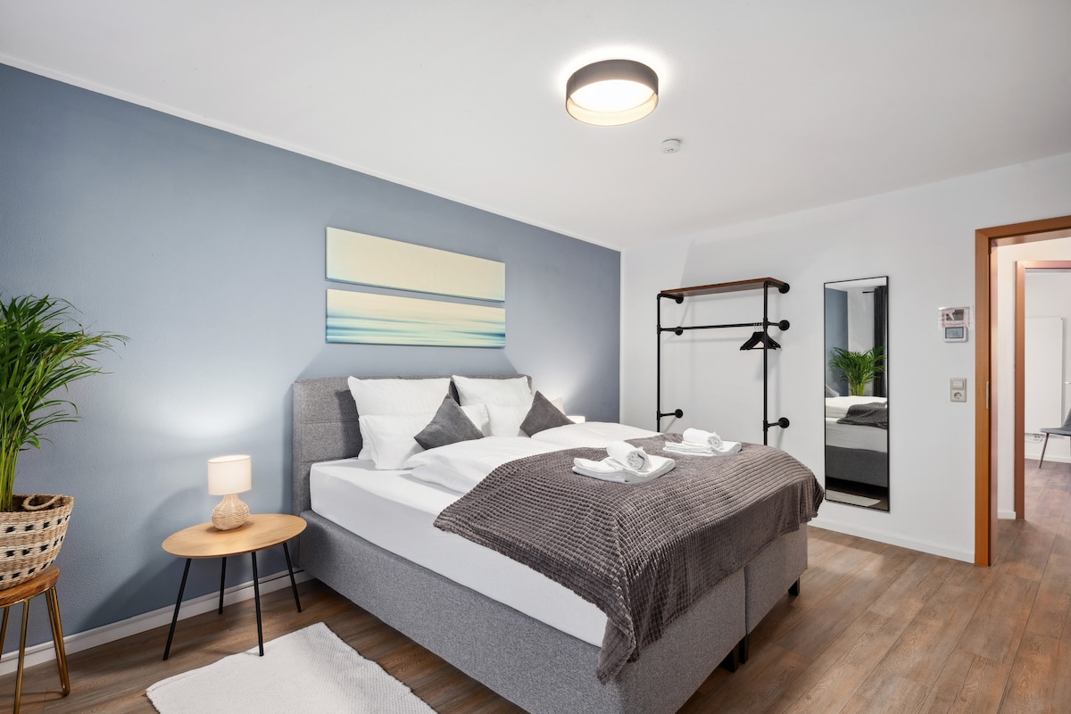 Добро пожаловать в вашу с любовью меблированную 2-комнатную квартиру в центре Ульма, всего в нескольких шагах от Мюнстера Ульма. Светлая гостиная со SmartTV, спальня с кроваткой, игровая зона, красивая лоджия, полностью оборудованная кухня и современная ванная комната. Wi-Fi, стиральная машина и закуски обеспечивают комфорт. Рядом множество ресторанов, магазинов и парковочных мест – идеально подходит для отдыха или деловых поездок. Конечно! С нетерпением ждем вас!😊