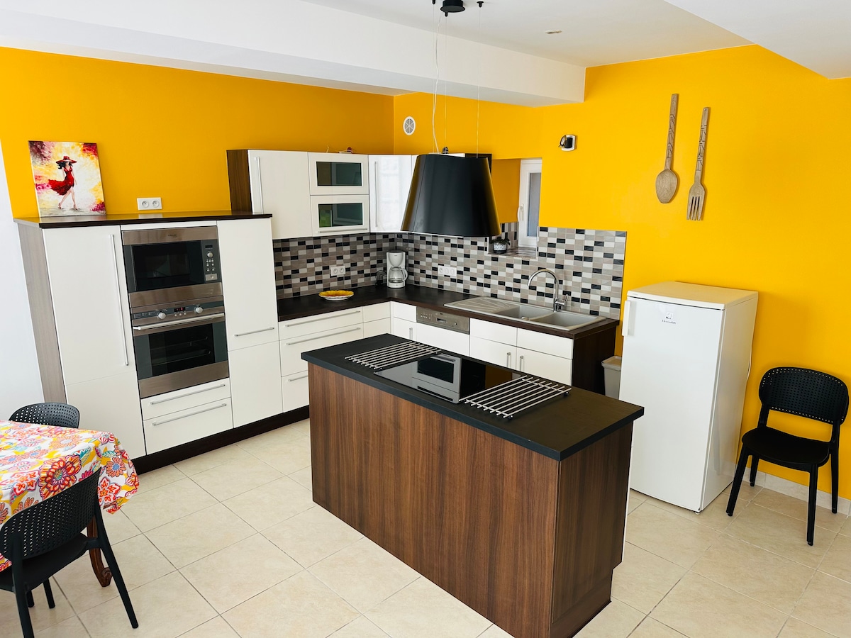 Отдельная и элегантная студия площадью 48 кв. м в отдельно стоящем доме, в которой могут разместиться 2 человека. Она оборудована мини-кухней, спальней, офисным пространством, гостиной с телевизором и отдельной ванной комнатой и туалетом (детская кровать и обогреватель по запросу). Зона отдыха для отдыха;) Все полотенца и постельное белье включены в стоимость. В жилье также есть двор для парковки и частный сад (садовый стол, стол для пинг-понга).