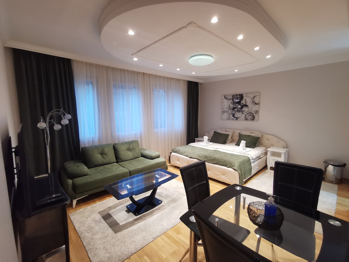 Enjoy a sApartment Enjoy B-52 Crown was completely renovated in 2024, extremely comfortable and luxuriously equipped. It is located in an excellent location on the main boulevard in Belgrade, right across from the central Tašmajdan city park. The apartment is air-conditioned, bright, and fully equipped for the needs of a longer stay. In the immediate vicinity there are numerous cafes, restaurants, food stores, pharmacies.