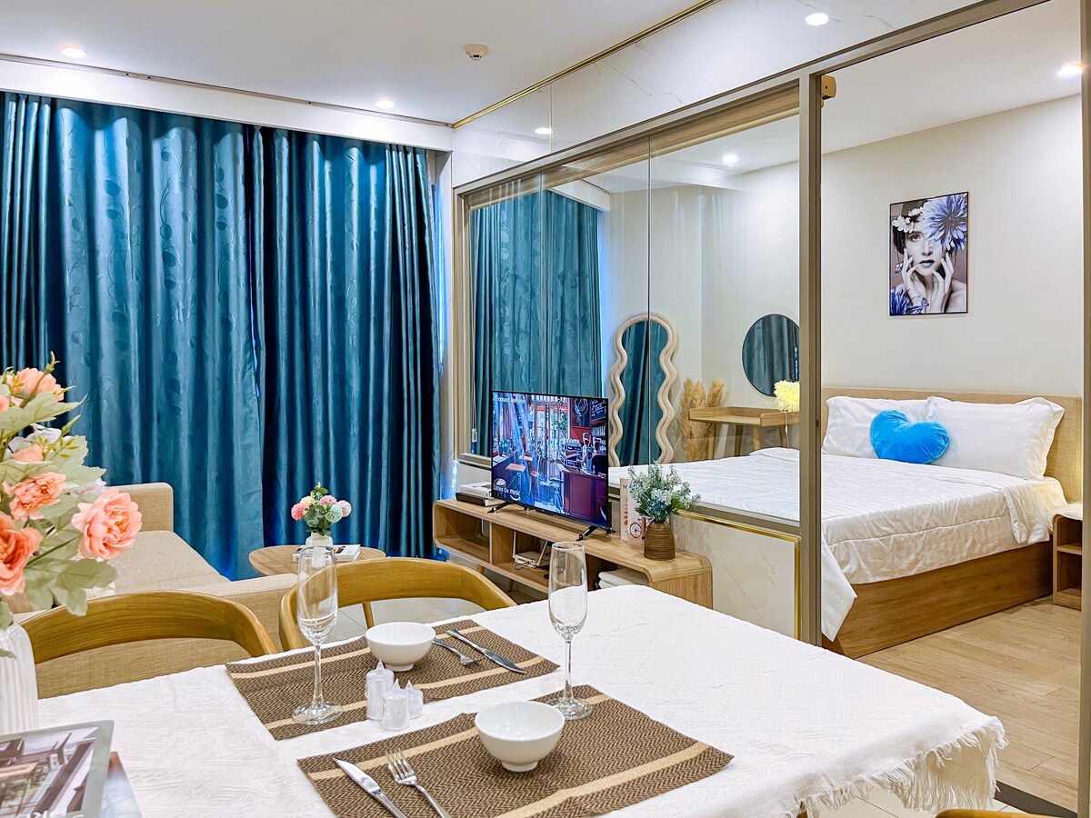 A modern, well-equipped studio apartment just minutes walking from Back Beach (Bai Sau). Walking distance to Lotte Mart, pharmacy, local market and convenience store. The Apartment is a perfect fit for a family of 4 with one bedroom with extra bed, kitchen, huge living room, comfortable shower, refrigerator, dinning table, working desk, closet and huge Wifi TV with Youtube.