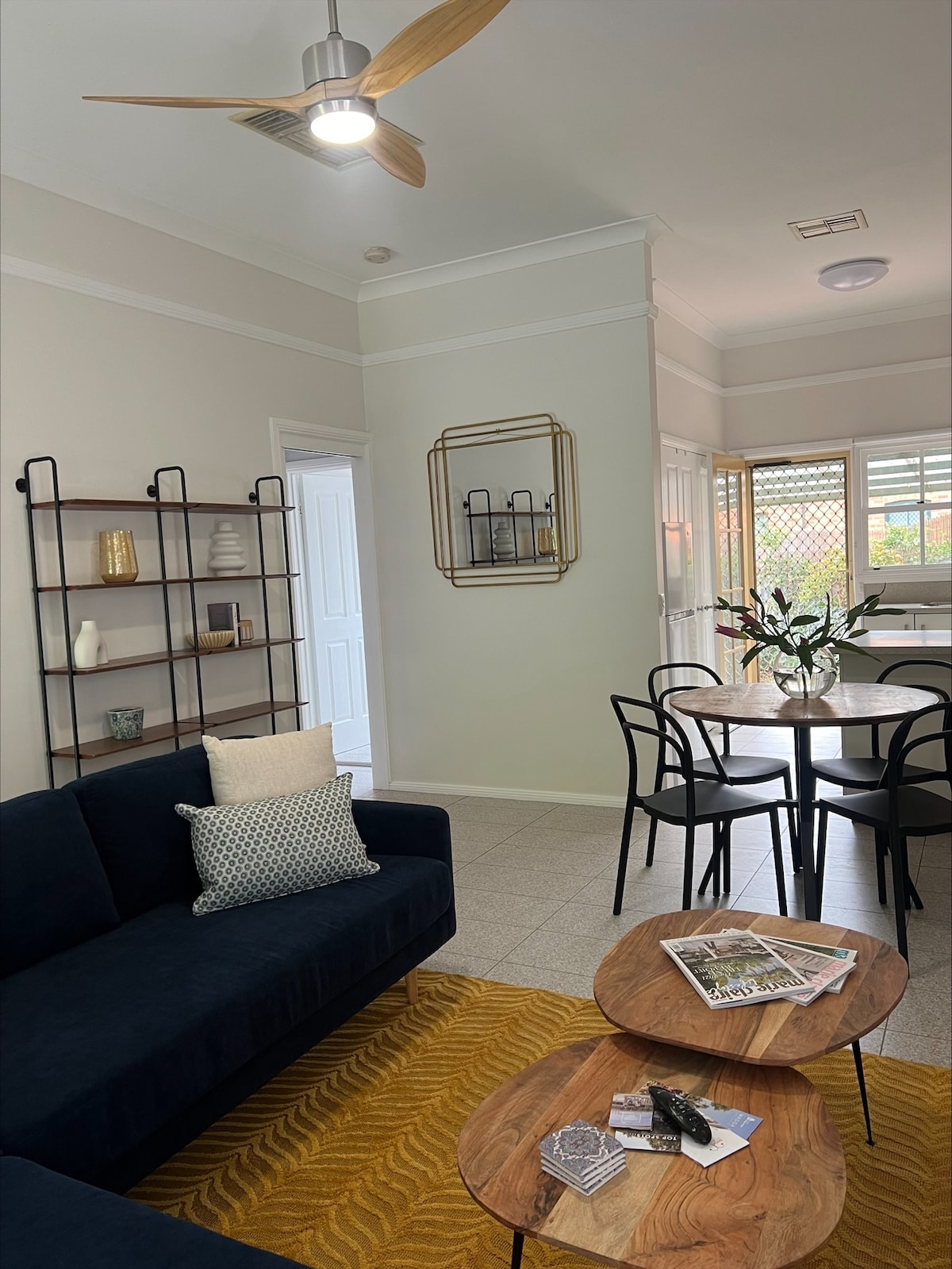 В центре Вагги. Подходит для домашних животных, питомцы должны быть заявлены при бронировании Светлый и светлый коттедж с тремя спальнями. В пешей доступности от магазинов и удобств, тренажерного зала и водного центра. Две отдельные гостиные с телевизором SmartTV Две ванные комнаты с душем и туалетом. Стиральная машина/сушилка. Канальный кондиционер и отопление. 3 Спальни Охраняемая внеуличная парковка для нескольких автомобилей Большой задний двор, Круглосуточный заезд. Качественное постельное белье/полотенца. Полностью оборудованная кухня. Бесплатный Wi-Fi 30 бесплатных фильмов p/m on fetch