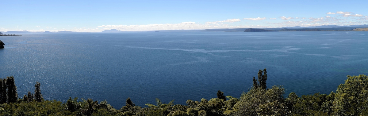 Красивый гостевой люкс с двуспальной кроватью размера Queen size и односпальным диваном-кроватью в современном новом доме на тихом жилом доме с видом на озеро и горы. Легко дойти пешком до озера Таупо и пляжа. Новый развлекательный центр с гастропабом, отличным кафе, мини-гольфом и боулингом находится в 5 минутах ходьбы. Мы находимся в нескольких минутах езды от центра Таупо.