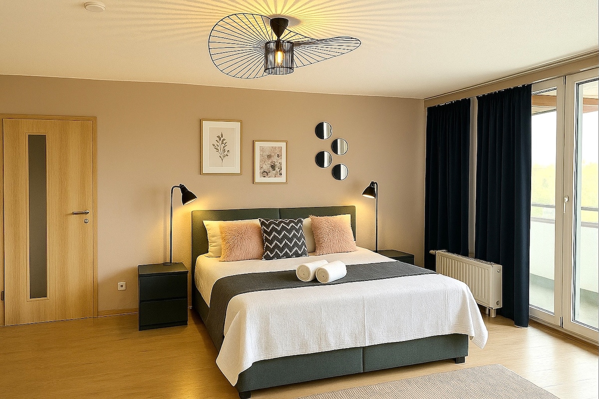Уютная квартира-студия в тихом жилом районе, недалеко от центра, с видом на Байройт и уникальные закаты. До центра Байройта пешком 20 минут пешком. До железнодорожного вокзала и Aldi всего 8 минут пешком. До Festspielhaus всего 15 минут. До большого природного парка, бывшей территории государственного садового шоу, всего 10 минут. Вы можете припарковаться прямо перед жилым комплексом, вдоль дороги.