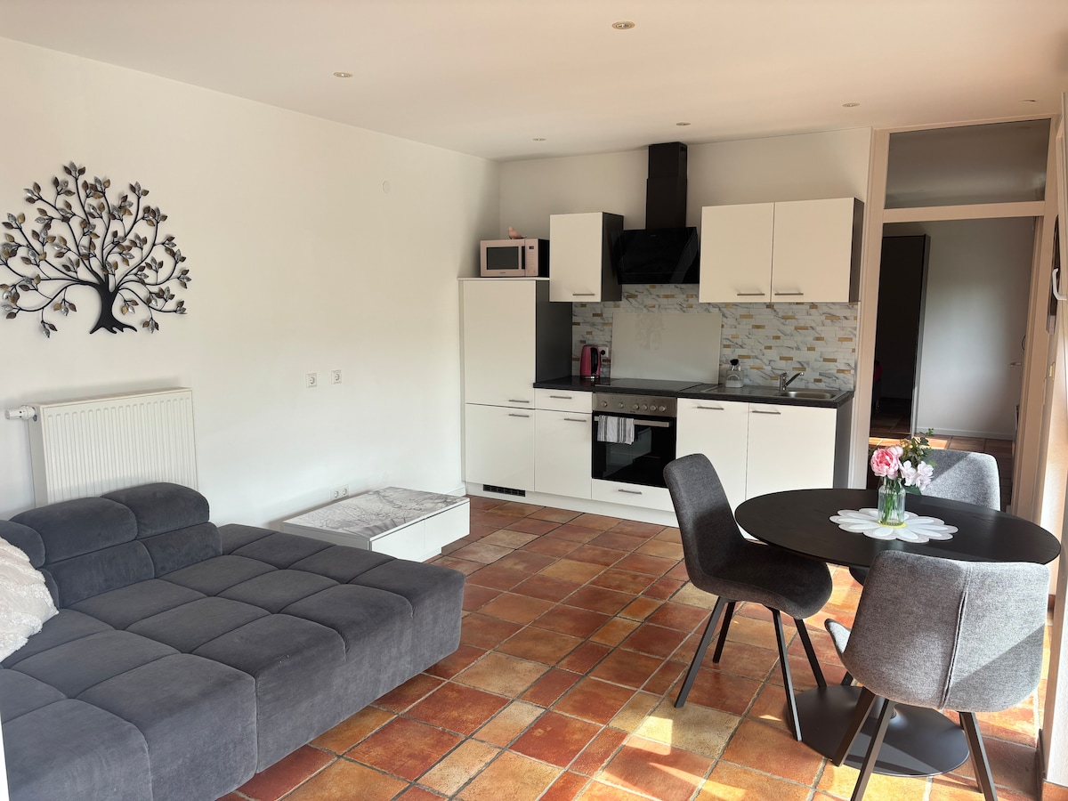 Добро пожаловать в дом вашей мечты! Здесь вы найдете стильный декор, современный дизайн и уникальные детали. Наслаждайтесь комфортом высококачественной мебели, полностью оборудованной кухней и роскошной ванной комнатой с тропическим душем. Отдохните на балконе с видом на Рейн. Тихое место предлагает отдых, в то время как до центра города и ресторанов можно быстро добраться. Будь то романтический отдых, семейный отдых или деловая поездка, это место идеально подходит для всех. Бронируйте сейчас!