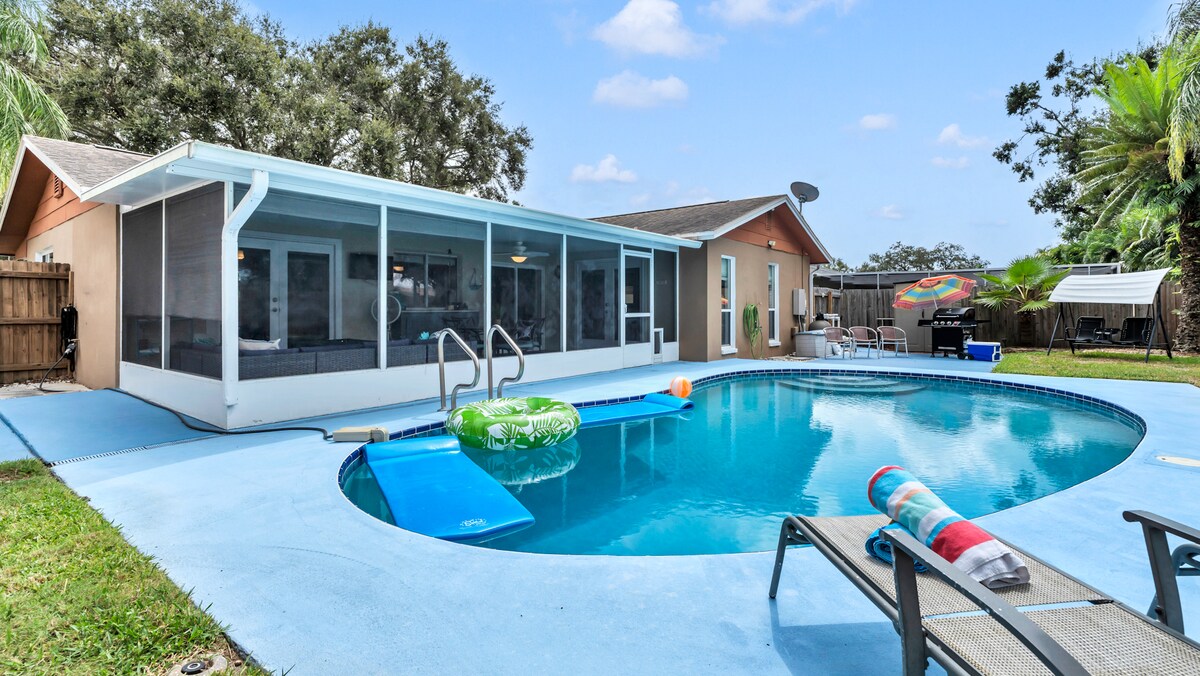 Приезжайте и наслаждайтесь нашим недавно отремонтированным бассейном! Наш обновленный дом идеально расположен всего в нескольких минутах от местных пляжей, ресторанов и развлечений, что делает его идеальным местом для вашего визита во Флориду. На заднем дворе есть недавно отремонтированный бассейн с подогревом, душ на открытом воздухе и патио с сеткой. Наша светлая гостиная предлагает комфортное пространство для отдыха после долгого дня, а наша кухня полностью укомплектована посудой, столовыми приборами и кофемашиной для вашего удобства. Обновленные фотографии бассейна скоро появятся!