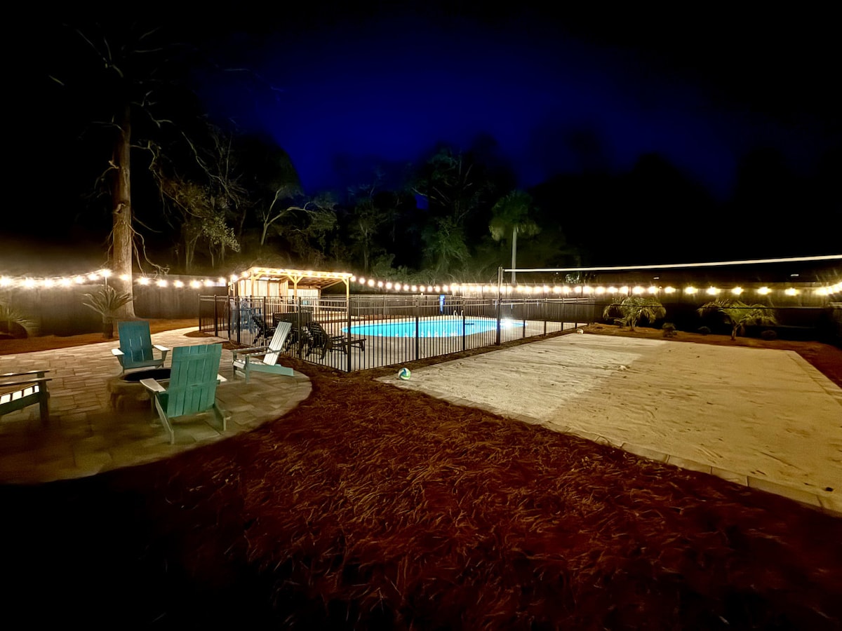 Saltwater Pool Firepit & BBQ Pet-Friendly Near 30A