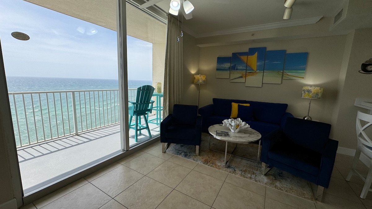 ПОТРЯСАЮЩИЙ ПЕНТХАУС GULF. Самое высокое здание Изумрудного побережья с собственным БАЛКОНОМ. ПРЯМОЙ ВИД НА ЗАЛИВ! Потоковое телевидение 65" UHD ROKU TV плюс 55" UHD ROKU и кровать размера King size в главной спальне. Со вкусом оформленный с «пляжными»свежими новостями. Очень удобный отдых с видом на Изумрудный побережье высотой 10футов. Фотографии не соответствуют действительности. Более 200 Мбит/с Wi-Fi! 2 односпальные кровати и удобная секционная кровать с двуспальной кроватью размера Queen size для детей. Два открытых и 1 крытый бассейны. Все необходимые удобства. Прогулка до парка Пирс. Рядом с аэропортом. Идеально!