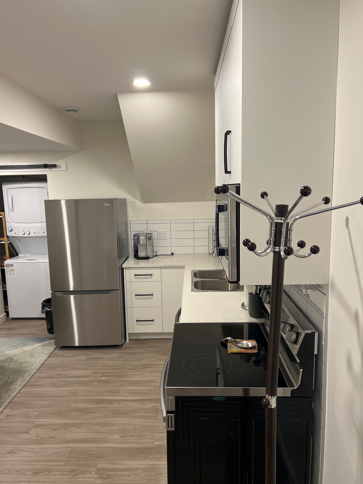 Добро пожаловать в наш очаровательный подвальный люкс, идеально подходящий для путешественников, пар или профессионалов. Наслаждайтесь отдельным входом, уютной спальней, ванной комнатой, меблированной гостиной и полностью оборудованной кухней для вашего удобства. Прачечная со стиральной машиной и сушилкой обеспечивает дополнительную легкость. Жилье расположено всего в 5 минутах от аэропорта города и предлагает комфорт, уединение и легкий доступ к местным достопримечательностям. Забронируйте жилье сегодня для спокойного и удобного отдыха - с нетерпением ждем вас!