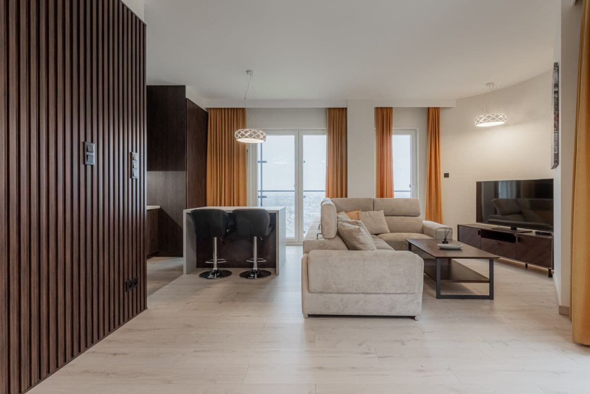 AmSuites — Откройте для себя уникальное сочетание роскоши, комфорта и дизайна в этой стильной городской квартире, идеально подходящей для романтического отдыха, удаленной работы или расслабляющего отдыха в городе. ✨ Самое интересное: — 🧖♂️ Круглогодичное джакузи с подогревом на частной террасе площадью 55 м² на крыше. — 📺 55-дюймовый телевизор со Smart TV. — ❄️ Кондиционер, высокоскоростной Wi-Fi и полностью оборудованная кухня. — 🚗 Безопасная парковка в гараже включена в стоимость. Полюбуйтесь звездами, расслабьтесь в безмятежном комфорте и сделайте свое пребывание в Варшаве незабываемым.